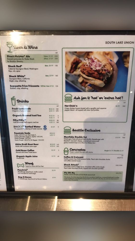 Shake Shack South Lake Union, located at 2115 Westlake Ave in Seattle, offers a diverse menu of delicious burgers, chicken dishes, and crinkle cut fries. The Avocado Bacon Burger, featuring Angus beef topped with freshly sliced avocado, applewood-smoked bacon, and ShackSauce on a toasted potato bun, is a standout option. For chicken lovers, the Avocado Bacon Chicken offers a crispy chicken breast with avocado, bacon, and buttermilk herb mayo. Don't miss out on their Bacon Cheese Fries, crispy crinkle cuts topped with cheese sauce and bacon. With options for vegan diners, and amenities like outdoor seating, Wi-Fi, and waiter service, Shake Shack South Lake Union provides a welcoming and satisfying dining experience for all.
